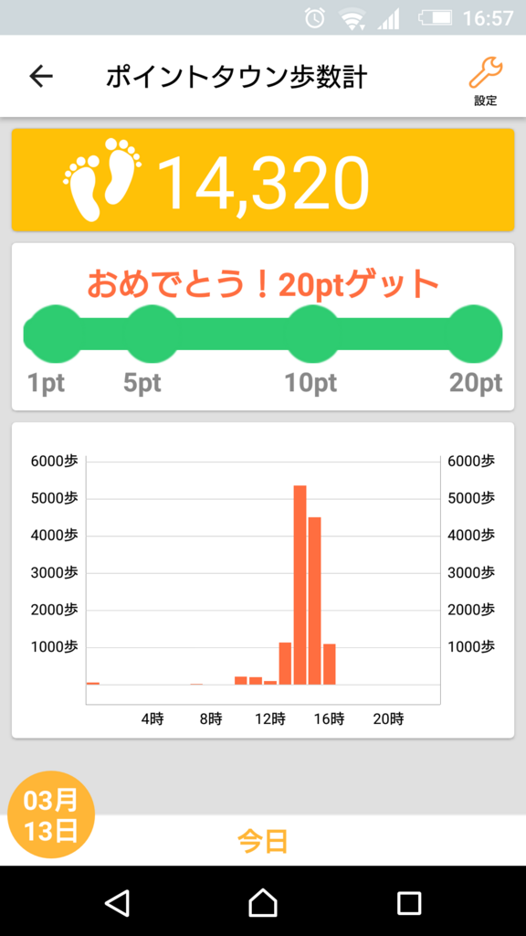 下の画像は実際の歩数計画面。14000歩超えてますね汗。。。