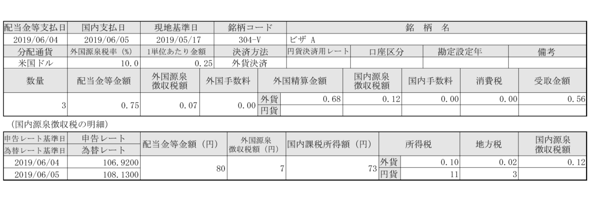 国内外の税金を引いて残った配当金が0.56ドル。。。